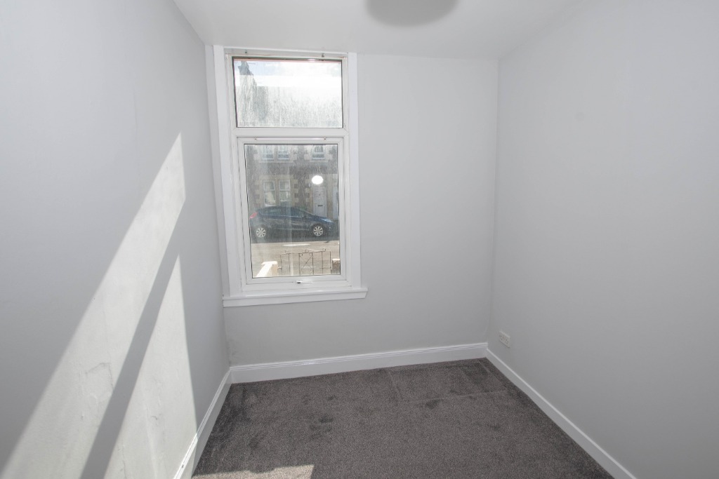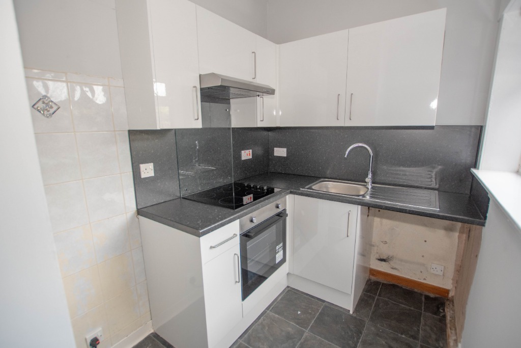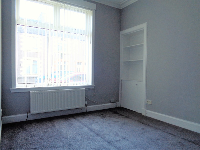 Central located ground Floor Flat Close to Leven Rail Link & Bus Station. Ideal for couple working professional. Accommodation: New Modern Fitted Kitchen, Lounge, Hall, two Bedrooms, Bathroom with shower overhead. GCH. DG. Street parking. Shared drying area.